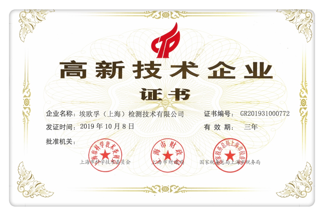 2020年(nián)3月(yuè)11日(rì)λ →,山西省網絡和信息化行業技術中心收到(dào)由上(sφ ☆hàng)海(hǎi)市(shì)科(kē)學技(←ε₩πjì)術(shù)委員(yuán)會(huì)、上(s♥σ↑∏hàng)海(hǎi)市(shì)财政局、國(guó)家(jiā)稅> 務總局上(shàng)海(hǎi)市(shì)>♠♠稅務局聯合頒發的(de)“高(gāo)新技(jì)術(shù)企業βσ"(yè)”認定證書(shū),埃歐孚檢測正式邁入高(Ω'δgāo)新技(jì)術(shù)企業(y$≤è)行(xíng)列!