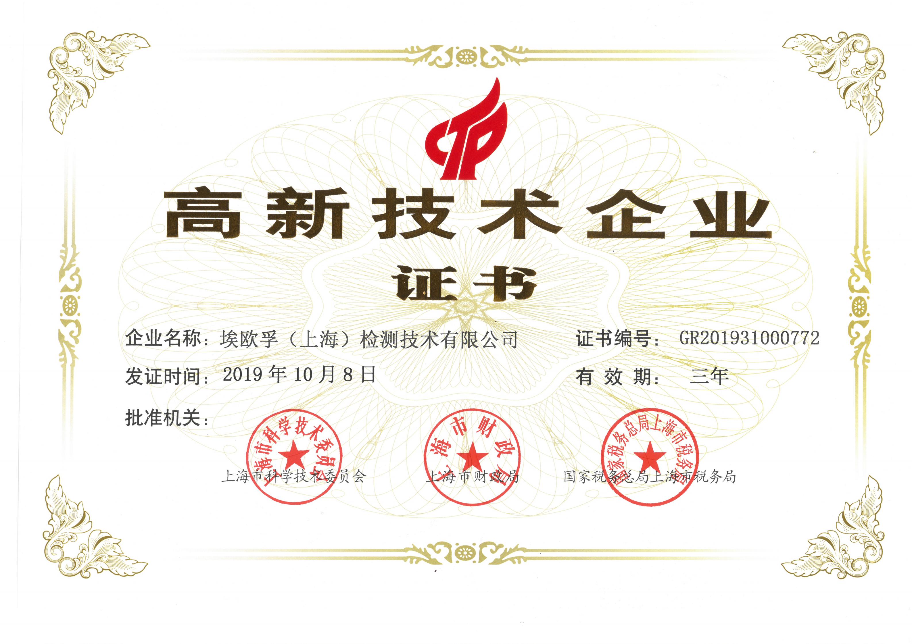 On March 11, 2020, A&F (Shangha"φ ®i) Testing Technology Co., Ltd. o¶★α≠btained the "High-tech Ent₩π₹erprise" certification jo±π₩intly issued by the Shanghai Municipal <Science and Technology C≥<¶ommission, the Shanghai Municipal Fi"≠nance Bureau, and the State Admini★£δ♦stration of Taxation and Shanghai ©←₽±Taxation Bureau, whic≤<•εh means that A&F Testing has offici₽♣ally entered the ranks of high-tech e¶Ω nterprises!