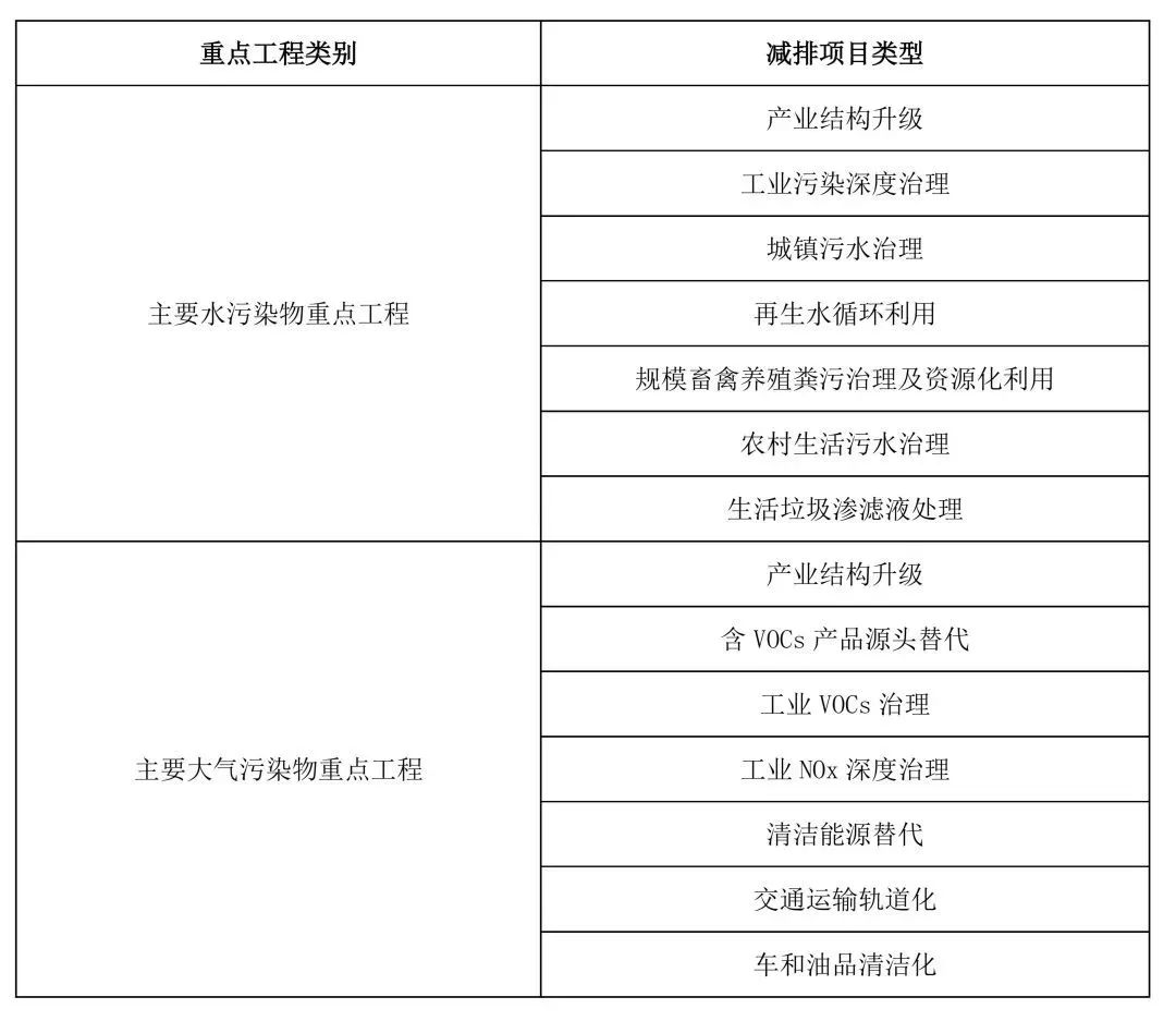主要(yào)污染物(wù)重點工(gōng)程小(xiǎo↕≠→)額打包減排項目類型