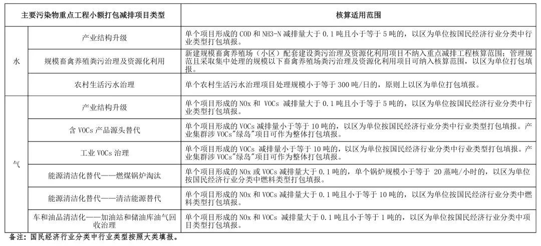 2. 主要(yào)污染物(wù)重點工(gōng)程小(xiǎo)×"♠Ω額打包減排項目類型
